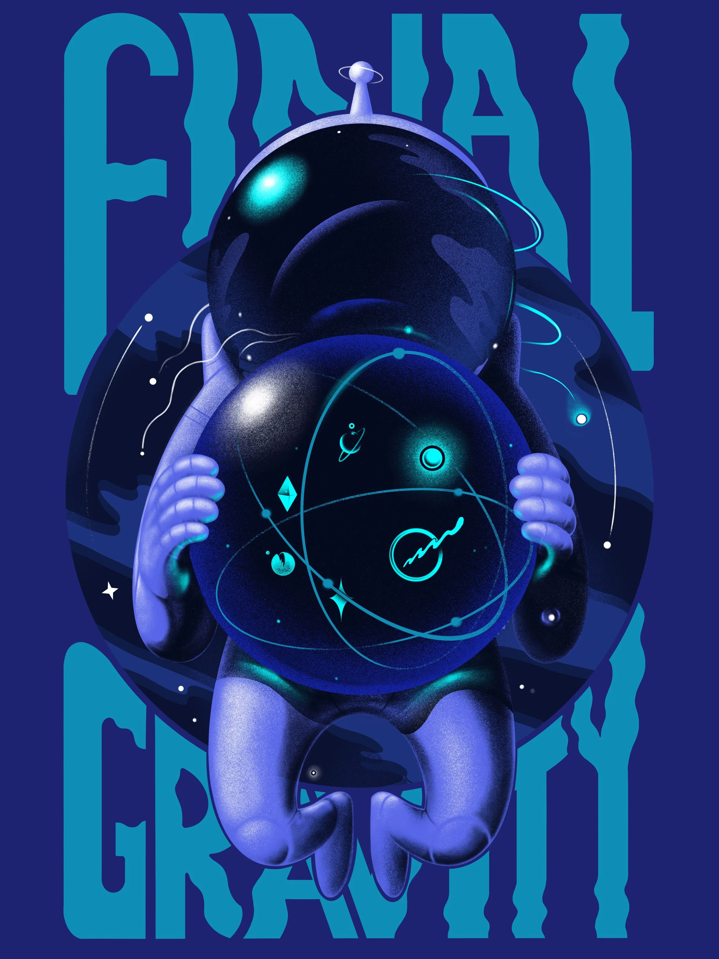 Designed for Final Gravity’s 6th anniversary, the idea is a lone astronaut on a voyage with their three dimensional astrolabe for navigating their space endeavors.